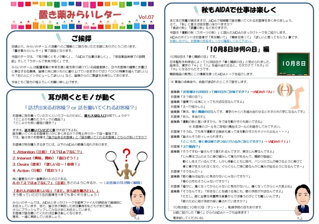 コラム「未来を拓く」 コラム「未来を拓く」Vol.8 2022年10月5日 2023年5月26日 配置薬業界の専門紙『家庭薬新聞』連載。 弊社の田中副代表によるコラム「未来を拓く」です。 配置薬業界業界の皆さまとの接点を通じて得られた、業界の未来を拓くための「気づき」を毎月お伝えしています。PDF資料のダウンロードを是非ご利用ください。 コラム「未来を拓く」Vol.8 1 ファイル 587.36 KB ダウンロード Facebook postはてブPocketFeedly